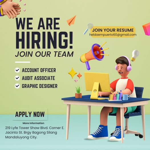 March 12, 2024DIRECT HIRING! CNT Group of Companies AVAILABLE POSITIONS: -Account Officer -Audit Associate - Graphic Designer Kindly send your CV or…