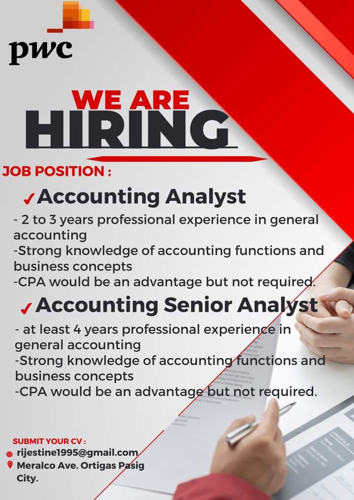 March 11, 2024PwC AC Manila is now hiring for FY24!! Be part of one of the Big 4 auditing firms! Kindly send…