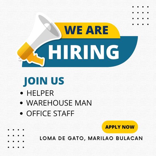 WE ARE HIRING!!!! Helper Warehouse Man Office Staff Kindly send your resume …