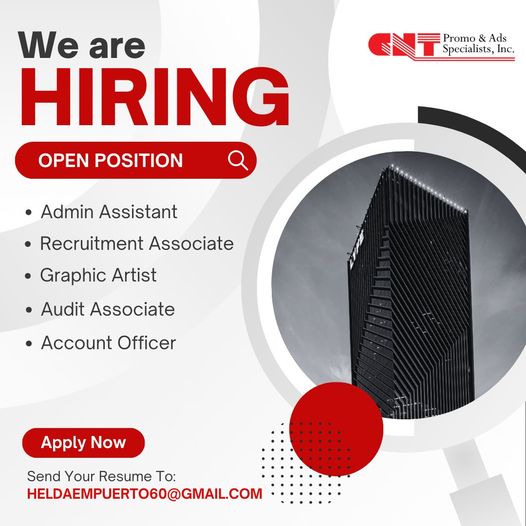 March 6, 2024DIRECT HIRING! CNT Group of Companies AVAILABLE POSITIONS: - Admin Assistant - Recruitment Associate - Audit Associate - Graphic Designer…